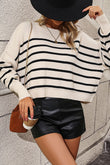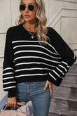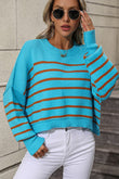 Striped Dropped Shoulder Round Neck Pullover Sweater