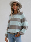 Striped Raglan Sleeve Ribbed Trim Knit Top