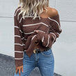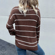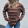 Striped V-Neck Slit Dropped Shoulder Sweater