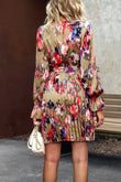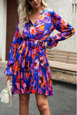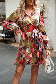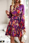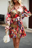 Surplice Neck Tie Waist Pleated Dress