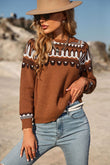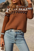 Sweet and Casual Patterned Round Neck Sweater