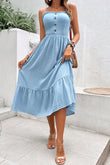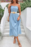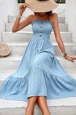 Sweetheart Neck Buttoned Sleeveless Midi Dress