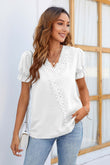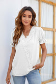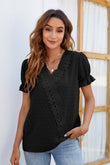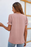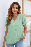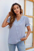 Swiss Dot Lace Trim Flounce Sleeve Blouse