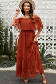 Swiss Dot Off-Shoulder Tiered Maxi Dress