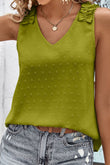 Swiss Dot Shoulder Detail V-Neck Tank