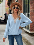 Swiss Dot V-Neck Long Sleeve Blouse