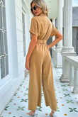 Tie Belt Buttoned Short Sleeve Collared Neck Jumpsuit
