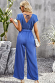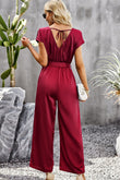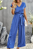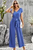 Tie Belt V-Neck Short Sleeve Jumpsuit