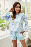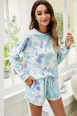 Tie-Dye Dropped Shoulder Top and Drawstring Waist Shorts Lounge Set