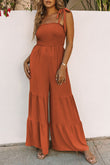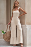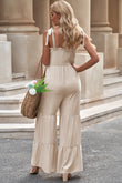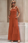 Tie-Shoulder Smocked Tiered Jumpsuit