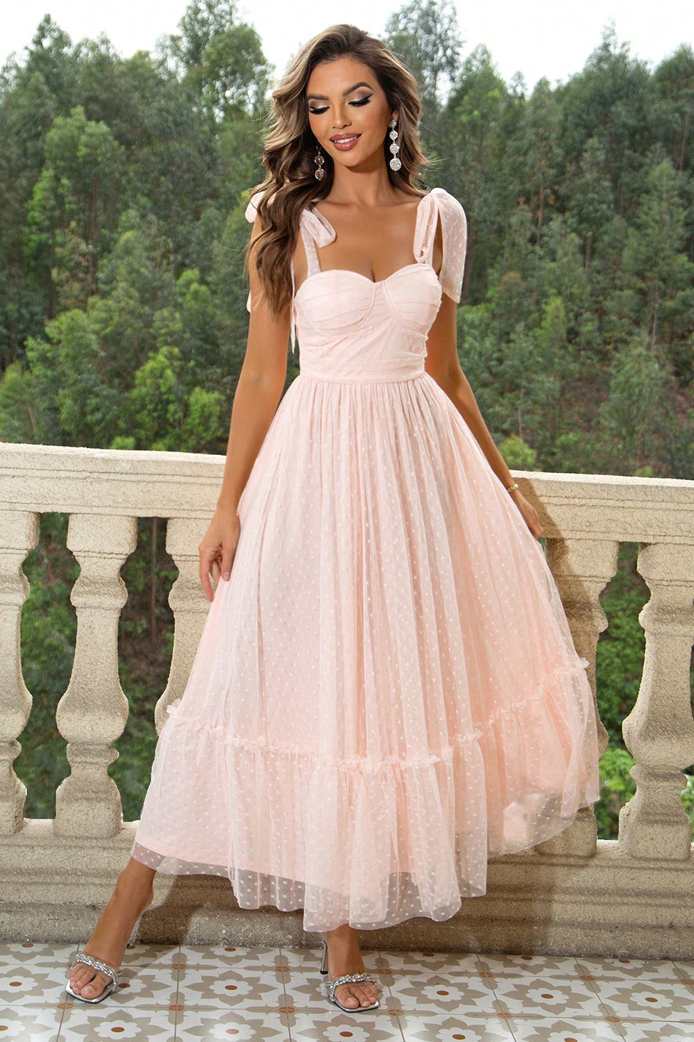 Tie-Shoulder Sweetheart Neck Dress
