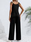 Tie-Shoulder Wide Leg Jumpsuit with Pockets
