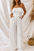 Tie-Waist Ruffled Strapless Wide Leg Jumpsuit