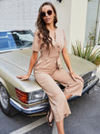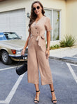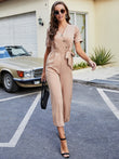 Tie Waist Surplice Neck Short Sleeve Jumpsuit