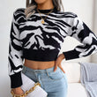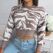 Tiger Print Mock Neck Cropped Sweater