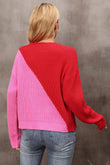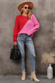 Two-Tone Round Neck Dropped Shoulder Sweater