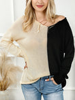 Two-Tone V-Neck Long Sleeve Knit Top