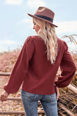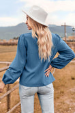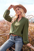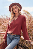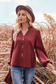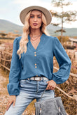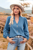 V-Neck Balloon Sleeve Button-Up Blouse