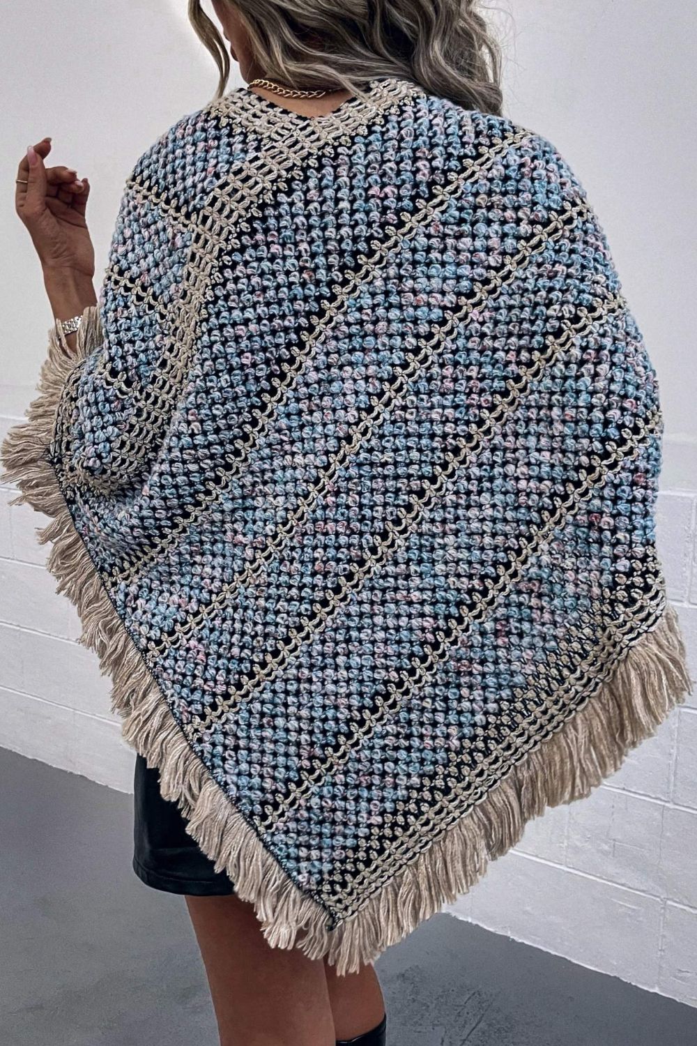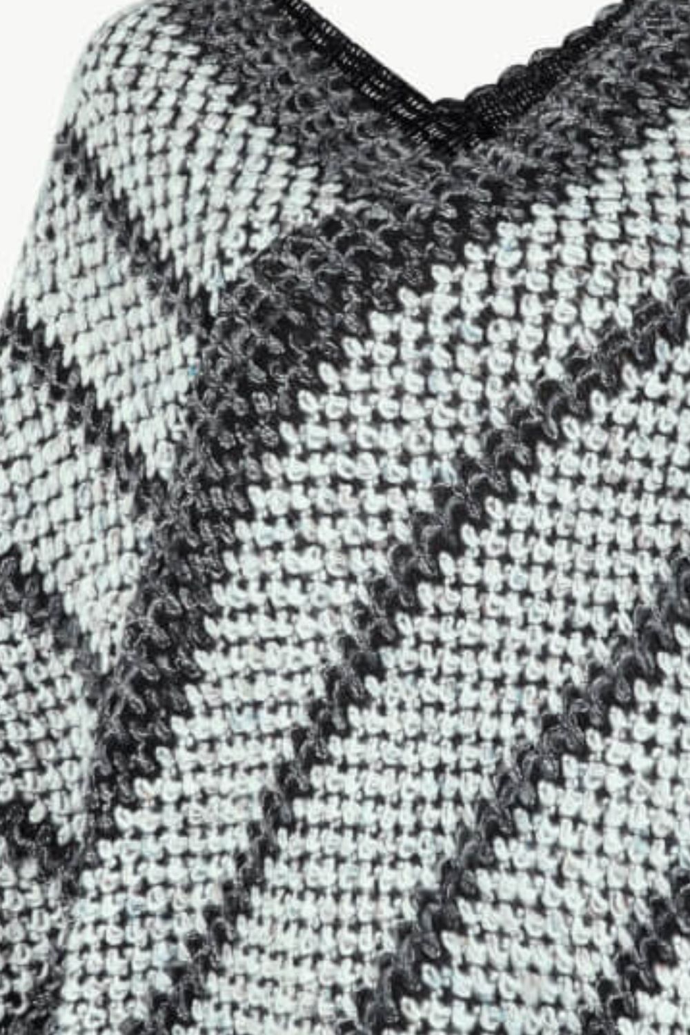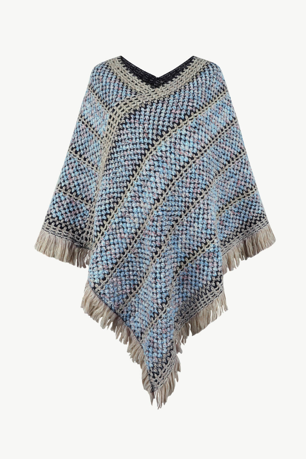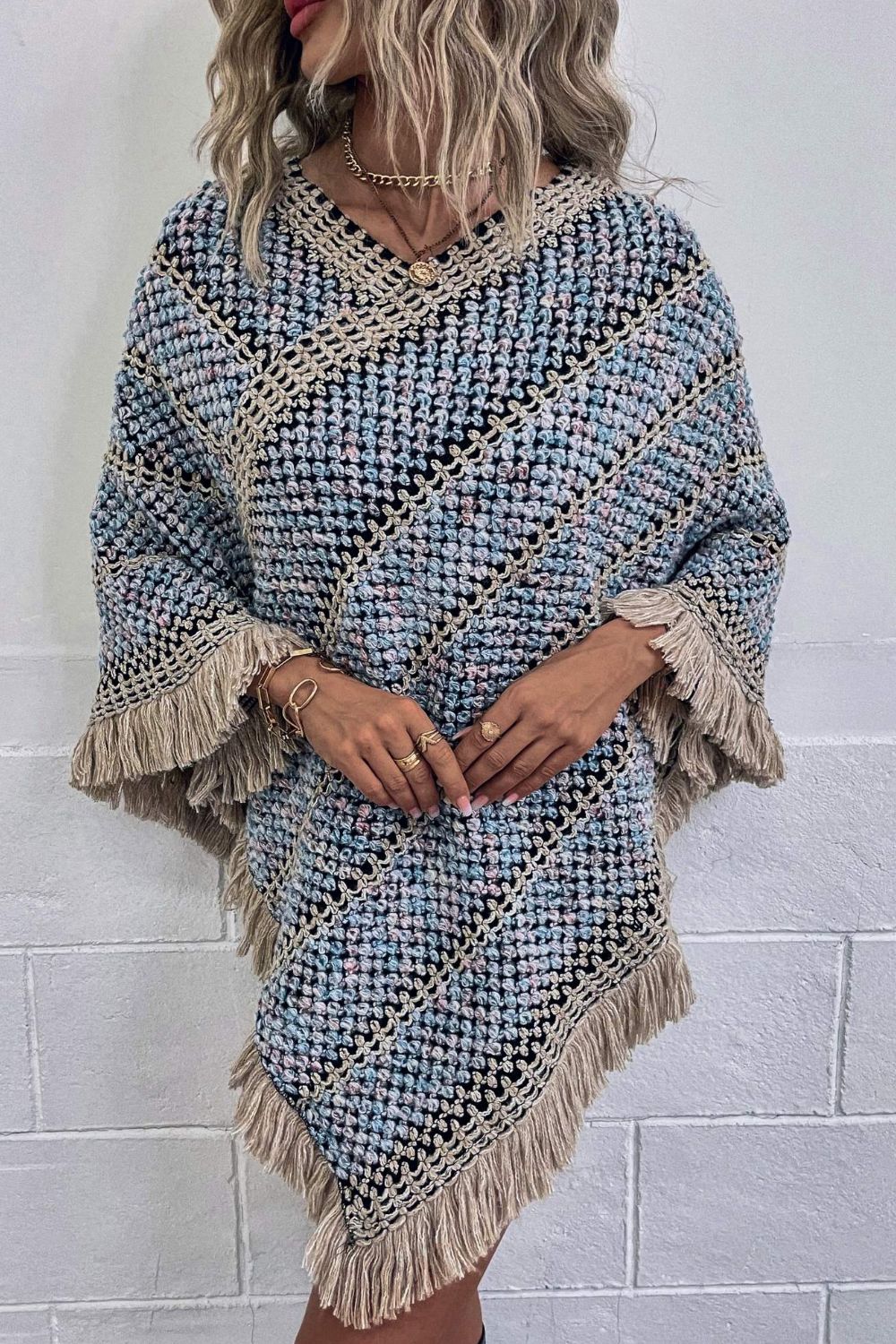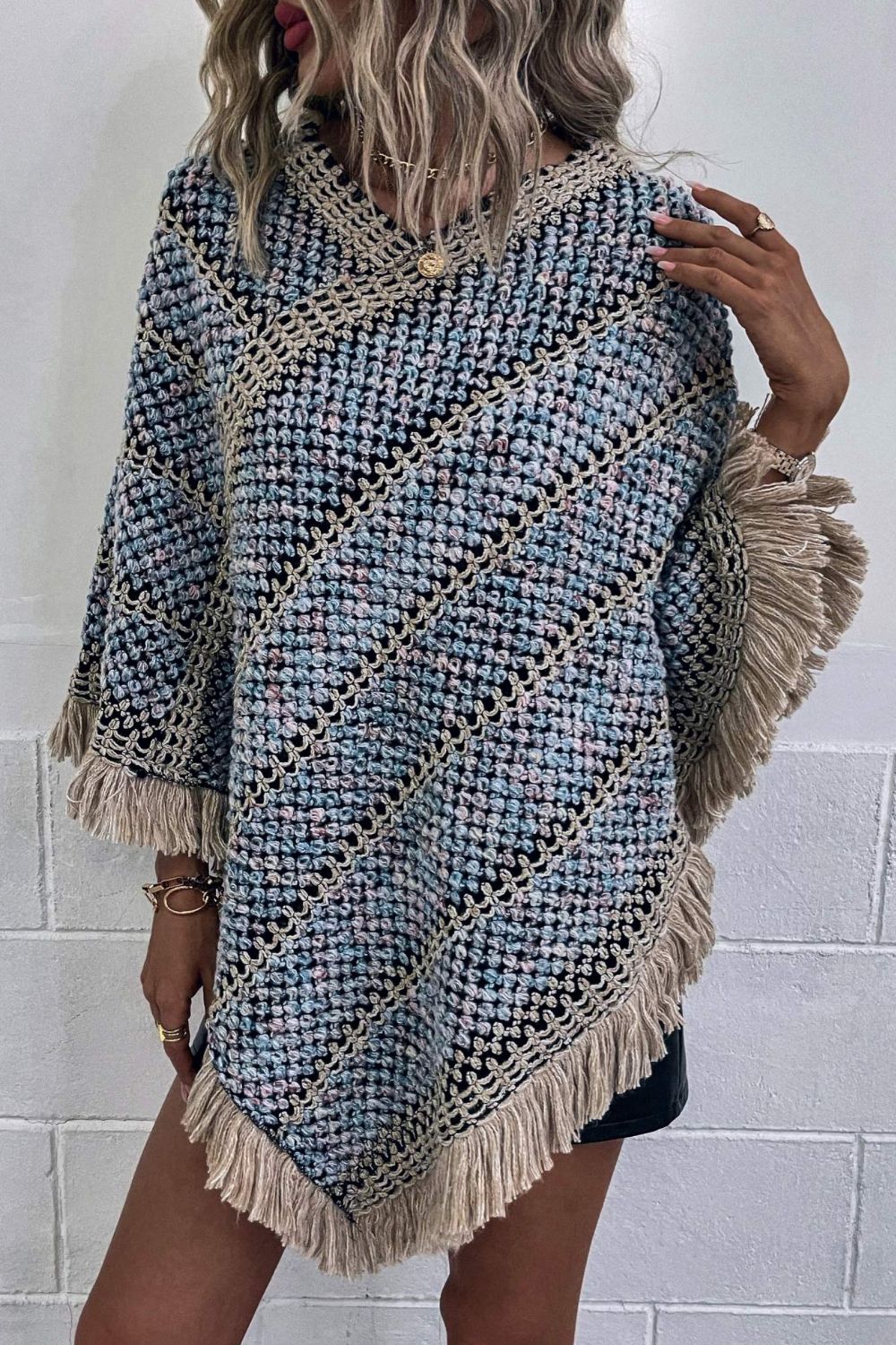 V-Neck Fringe Hem Poncho