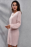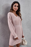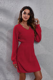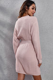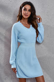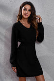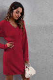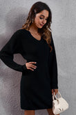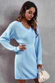 V-Neck Long Sleeve Rib-Knit Sweater Dress
