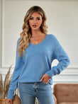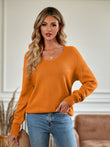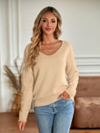V-Neck Long Sleeve Ribbed Trim Sweater