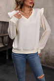V-Neck Ruffle Trim Long Sleeve Sweatshirt