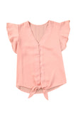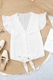 V-Neck Tie Hem Flutter Sleeve Blouse