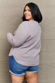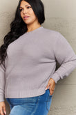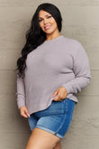Zenana Breezy Days Plus Size High Low Waffle Knit Sweater