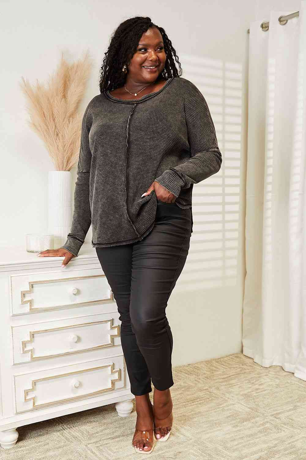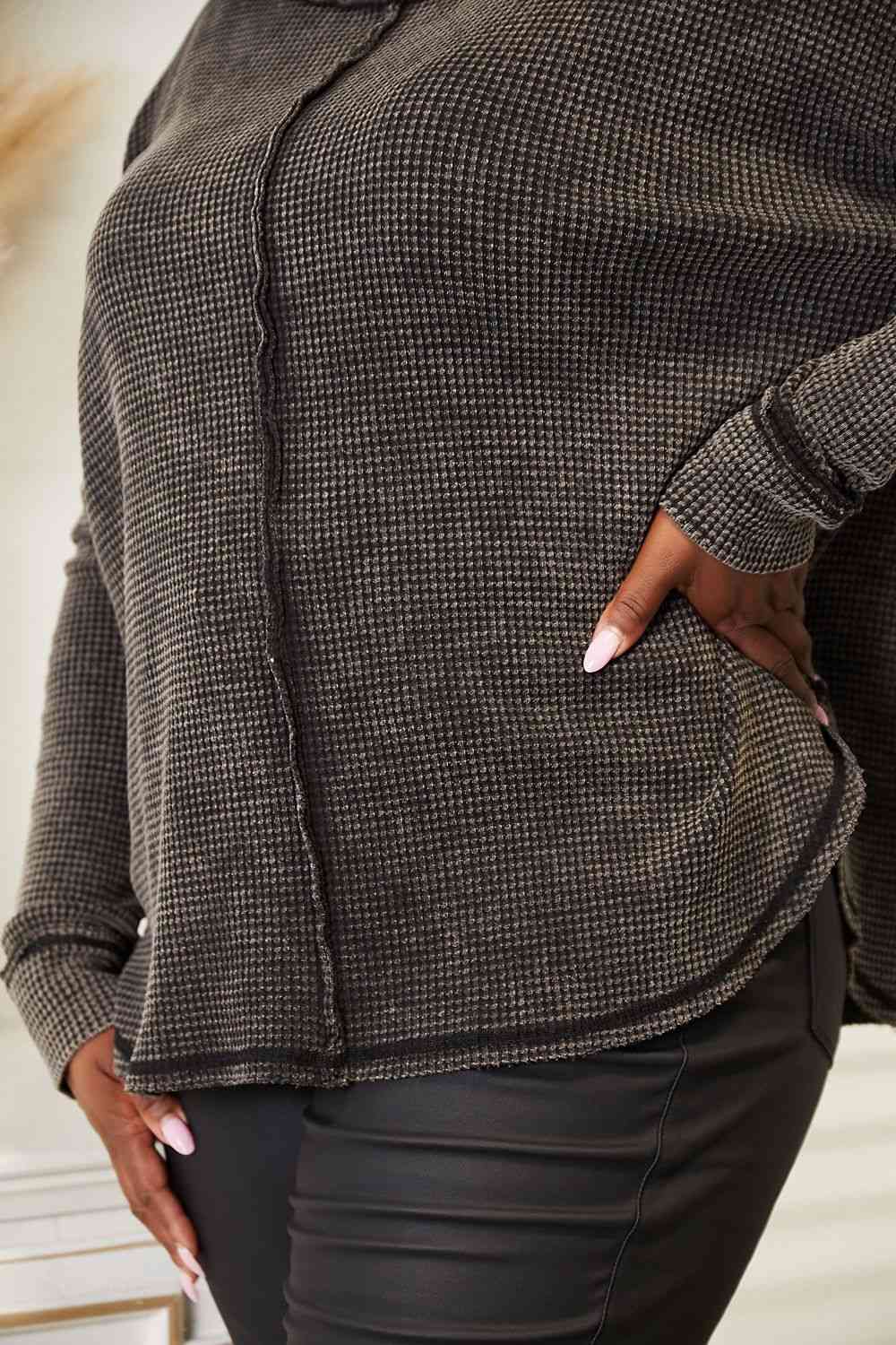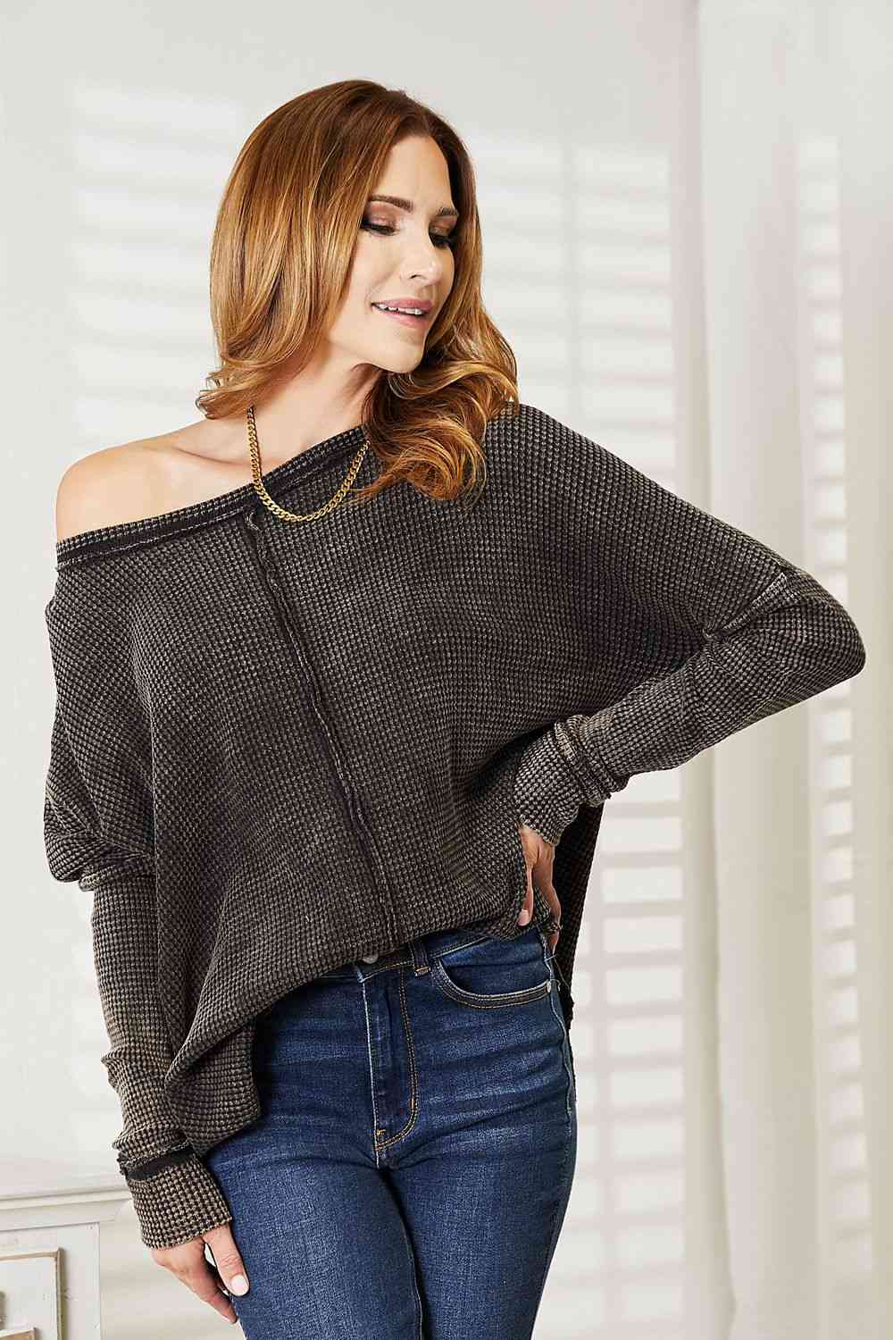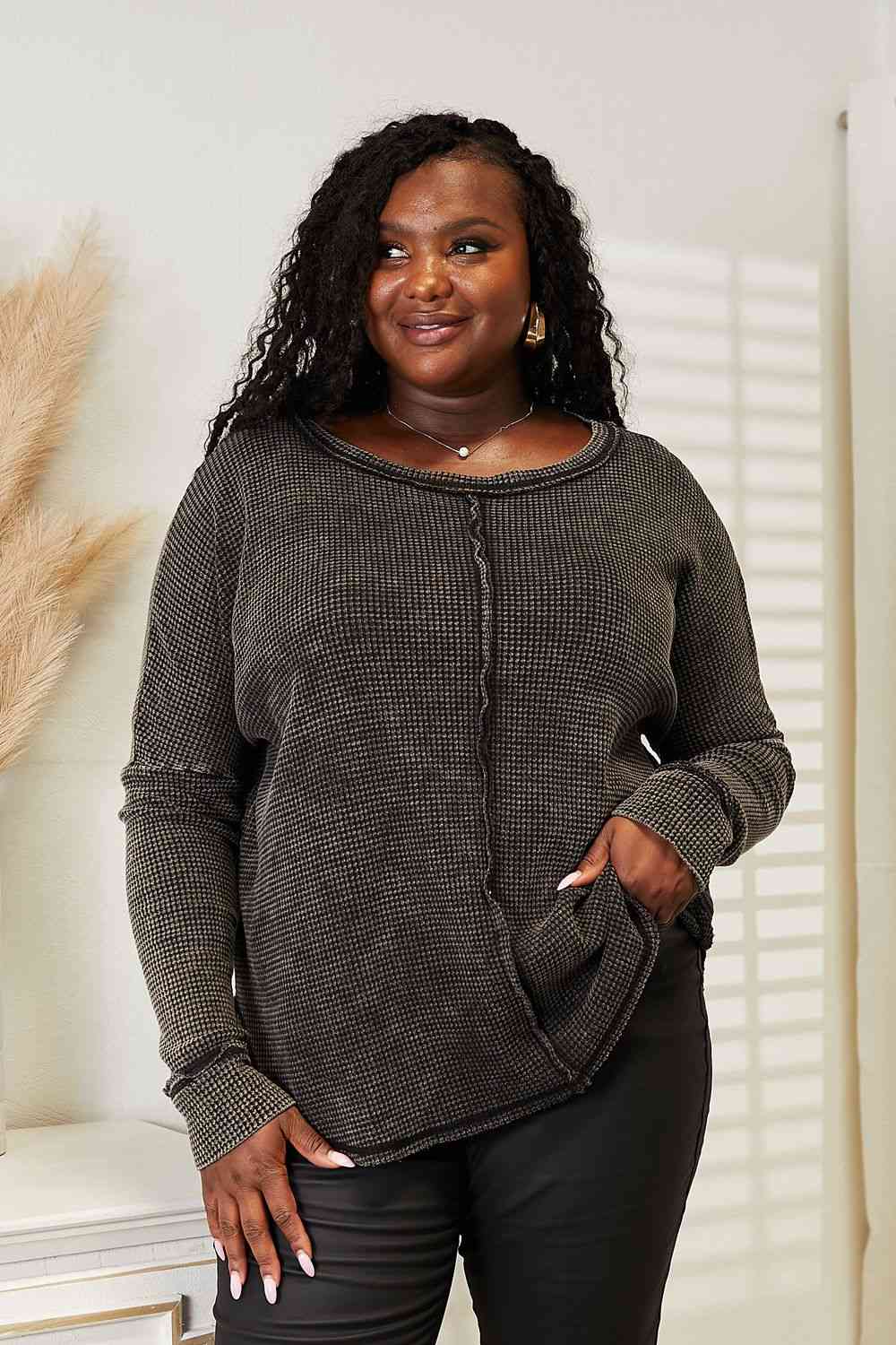 Zenana Full Size Washed Baby Waffle Oversized Long Sleeve Top