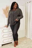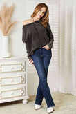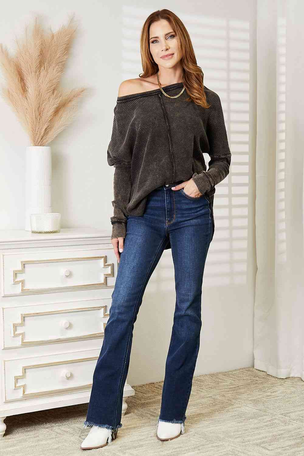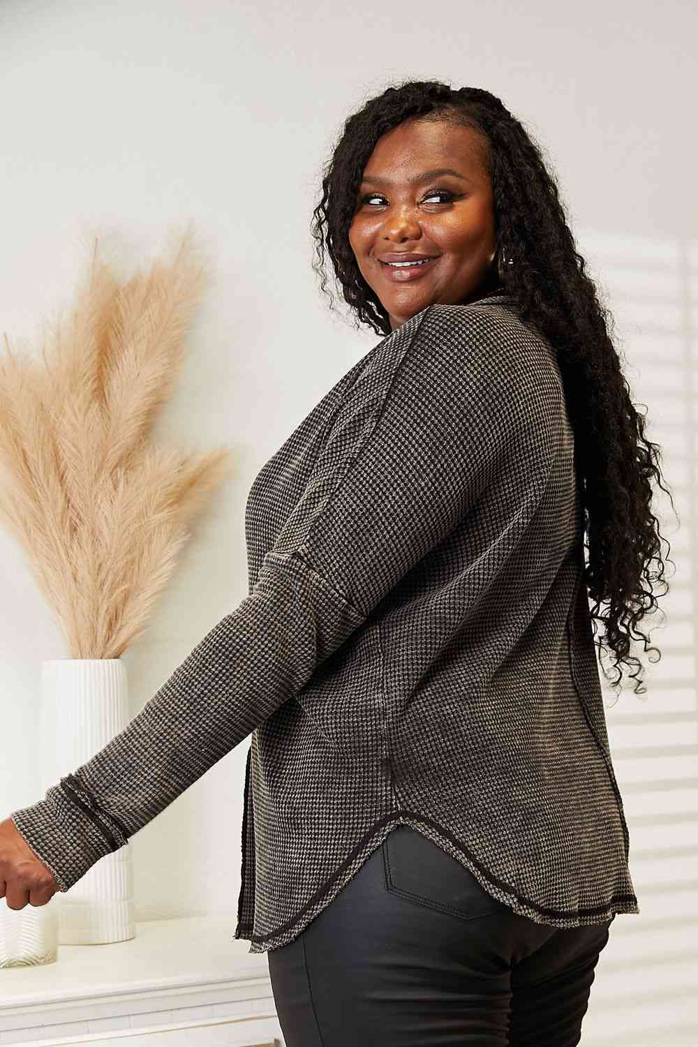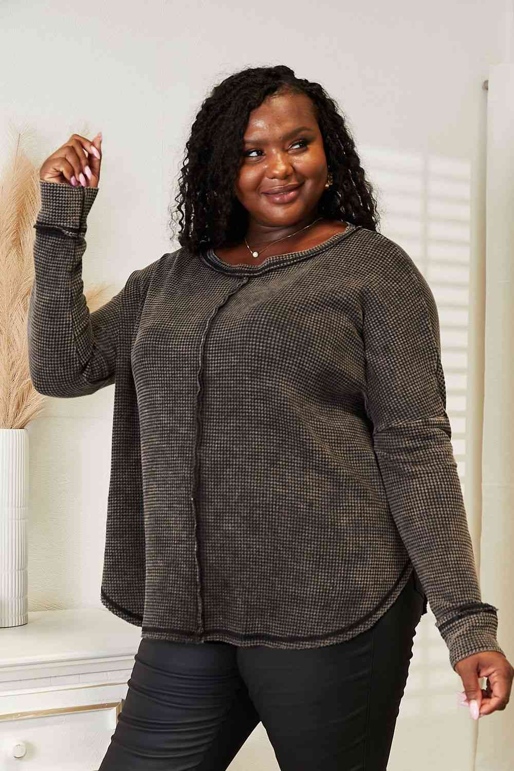 Zenana Full Size Washed Baby Waffle Oversized Long Sleeve Top