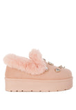 The slip on snow boots are the coziest pair you'll own with the soft faux fur collar. The cute little charms detail elevate the visual aesthetic and gives the footwear an adorable and chic aesthetic which is very appealing. The soft cushion insoles cut strain while the slip on design gives them an easy to wear feature.