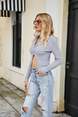 ZIp-Up Rib-Knit Cropped Cardigan
